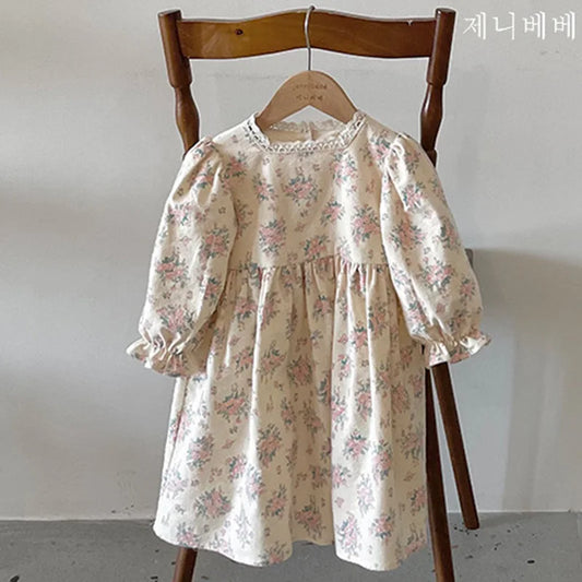 Children Clothes Dress Autumn Kids Baby Girls Dress Long Sleeve Sweet Flower Print Princess Dress Spring Casual Baby Girls Dress