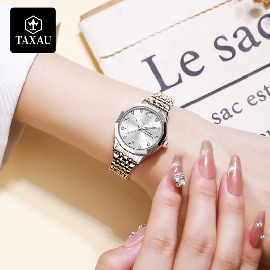 TAXAU Luxury Brand Women Wrist Watches Stainless Steel Elegant Waterproof Women's Quartz Watches High Quality Casual Woman Watch