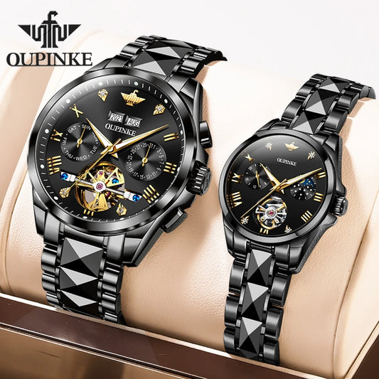 OUPINKE Tourbillon Couple Watches for Men Women Luxury Lover's Watches Tungsten steel Sapphire TOP Brand Coupl Wristwatches NEW
