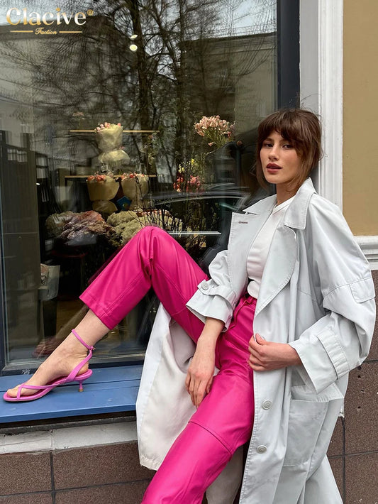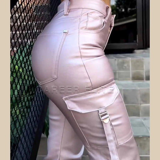 Elegant High Waist Pink Leather Pants for Women