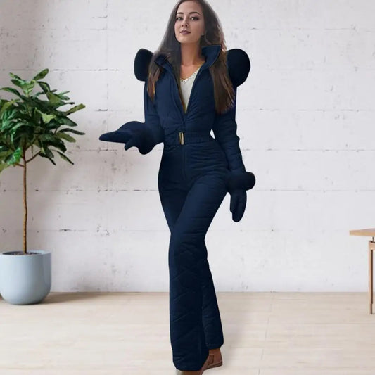 Waterproof Ski Jumpsuit Ski Outfit Winter Women's Snowsuit With Gloves Hooded Outdoor Sports Jumpsuit Warm Women's Ski Suit