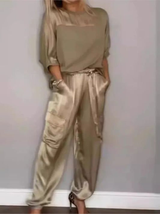 Elegant Women's Satin Two-Piece Set – Spring/Summer
