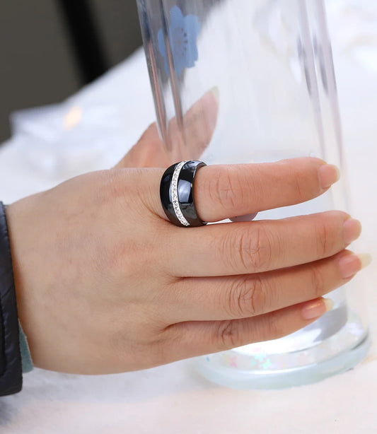 Luxury Romantic Clear Black And White Ceramic Ring Jewelry For Women Accessories Fashion Jewelry Ring With Bling Crystal