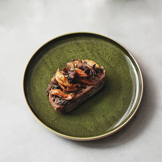 Ceramic Dinner Plate Salad Sushi Plate Green Retro Shallow Pasta Steak Salad Dish Bread Plate