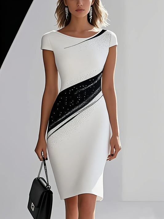 [Elegant Midi Dress] Sleek Elegant Bodycon Midi Dress | Sleeveless, Round Neck, Sparkling Detail, Formal Attire for Adult Women