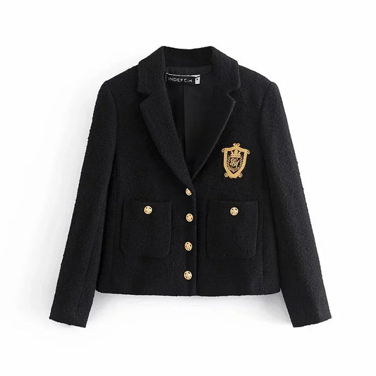 Zar Women's Black Blazers - Office & Formal Jackets with Embroidery