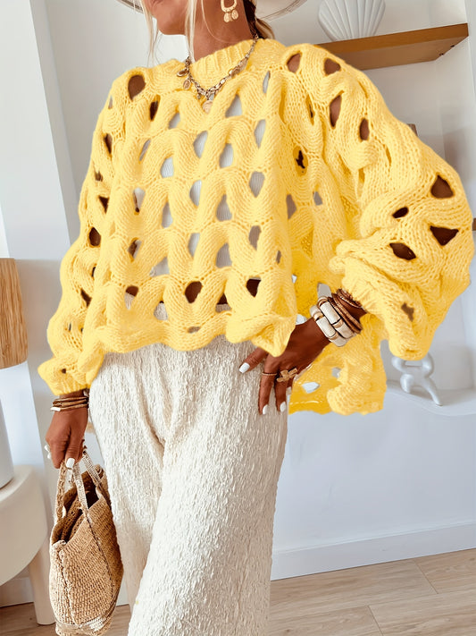 Regular price From $86.99 CADRegular priceUnit price / per$123.99 CADSale price From $86.99 CAD[Crochet Sweater] Semi-Sheer Crochet Batwing Sleeve Sweater | Women's Vacation Resort Style Round Neck Pullover - Spring Summer Fall Casual Beachwear Top, Summer Fashion, Intricate Openwork