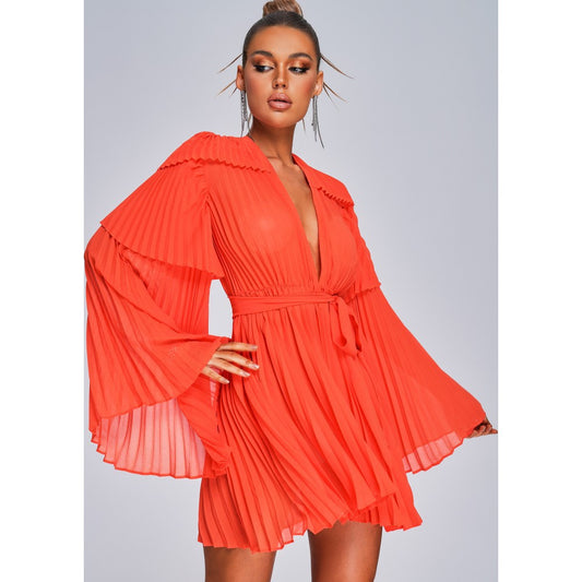 Regular price $82.99 CADRegular priceUnit price / per$124.99 CADSale price $82.99 CADWomen's Low-cut Pleated Flared Long Sleeve Show Dress