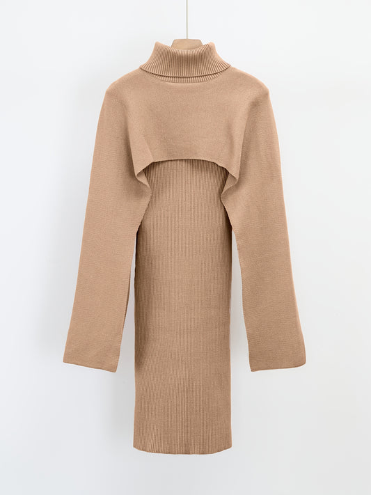 Women's Solid Color Loose Knitted Dress 2023 Autumn Winter New Dress Sweater Women Long Sleeve Turtleneck Pullover Dress Sweater