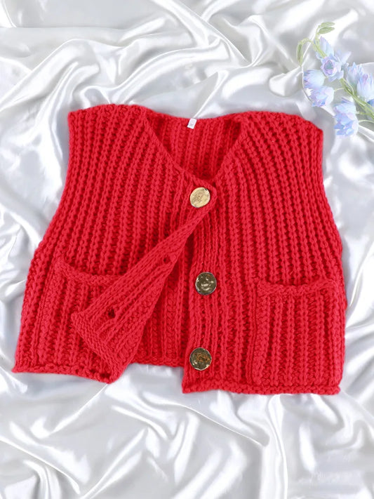 Women'S Knitted Vest Chic Clothes Red Color Sleeveless Casual Tank Top Women Sweater Vests Fashion Sweater Top Button Clothing