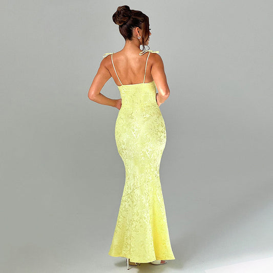 Women's Solid Color Jacquard Lace-up Fishtail Skirt Slim Fit Long Dress