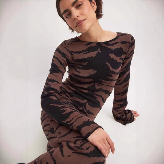 Elegant Dress French Party Dresses Temperament Vestidos Commuting Vestido Bodycon Slim Package Hip Long Sleeves Leopard Print