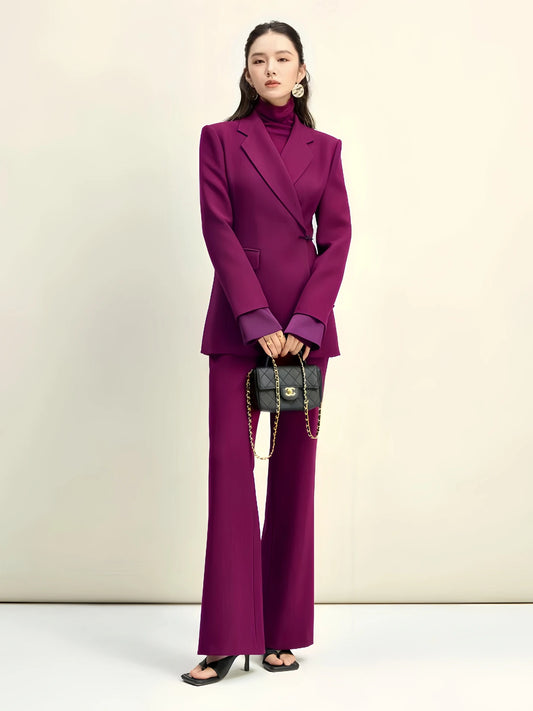 Ele Women's Slim Fit Suit Two-Piece Set Autumn Winter Purple Flared Pants Chinese Sle Faionable Casual Workwear