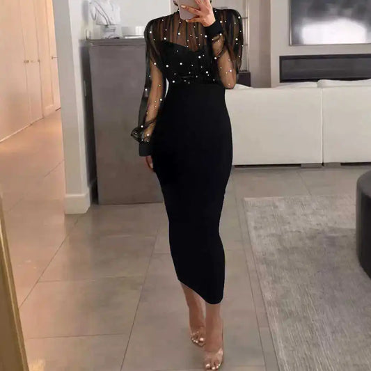 Regular price $123.99 CADRegular priceUnit price / per$157.99 CADSale price $123.99 CADEle Gentle Sle Long Sve Me Sequin Splice Bodycon Dr Women Sexy Midi Dr Polyester Fabric All Seasons Wear