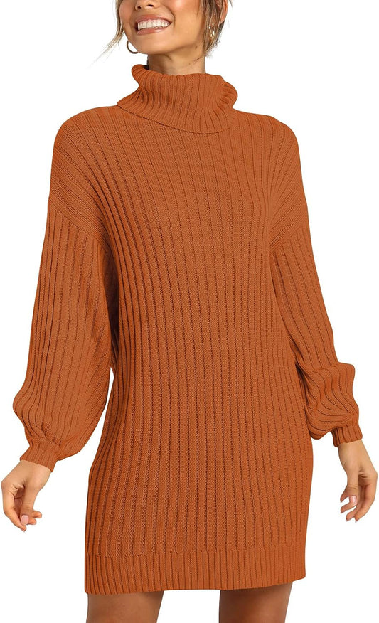ANRABESS Women Oversized Sweater Dress Turtleneck Batwing Long Sleeve Ribbed Knit Loose 2025 Fall Winter Casual Short Dress