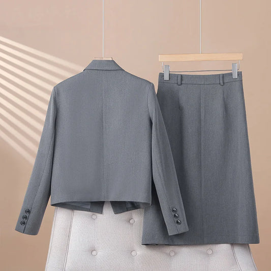 2024 Women Fashion Two-Piece Set Vintage Tweed Single Breasted Blazer Female Short Jacket Pleated Skirt Chic Suit Ladies Outfits