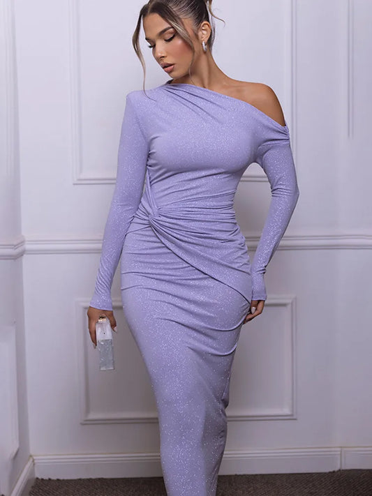 Articat Elegant Long Sleeved Shiny Pleated Bodycon Party Evening Dress Women Autumn Winter New 2025 Tight Sexy Pleated Vestidos