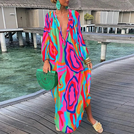 Regular price From $68.99 CADRegular priceUnit price / per$91.99 CADSale price From $68.99 CAD2024 Women Boho Print Loose Beach Dress Elegant Deep V-Neck Maxi Dress Ladies Sexy Long Sleeve Oversized Dresses Robe Longue