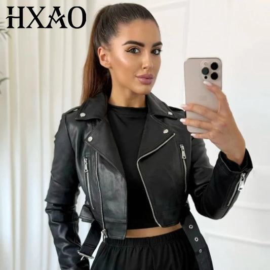 Chic Black Leather Moto Jacket for Women