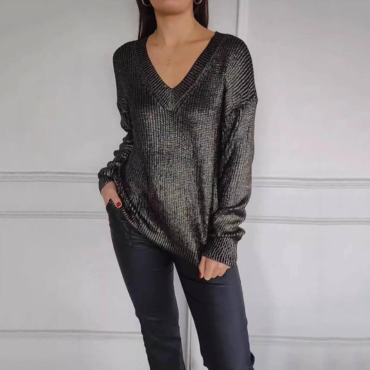 Regular price From $36.15 CADRegular priceUnit price / per$54.23 CADSale price From $36.15 CADV Neck Glitter Pullover Sweater for Women