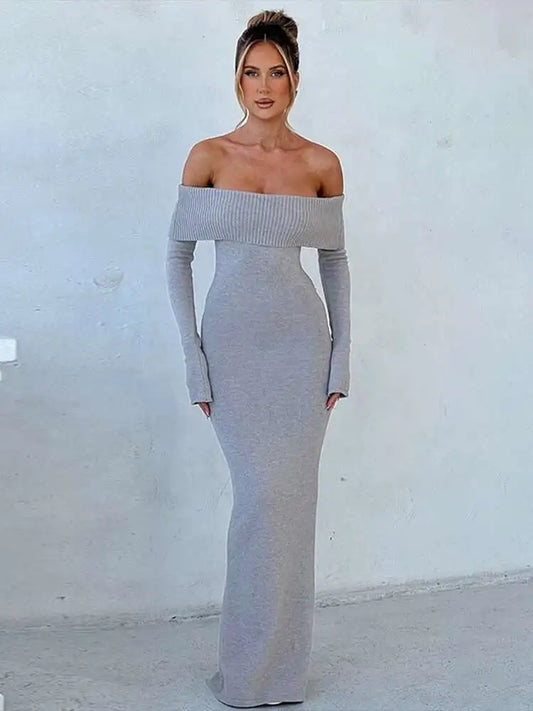 Townlike Knitted Slim Bodycon Dress Women Off Shoulder 2024 Autumn Winter Dress Nightclub Sexy Party Elegant Maxi Long Dresses