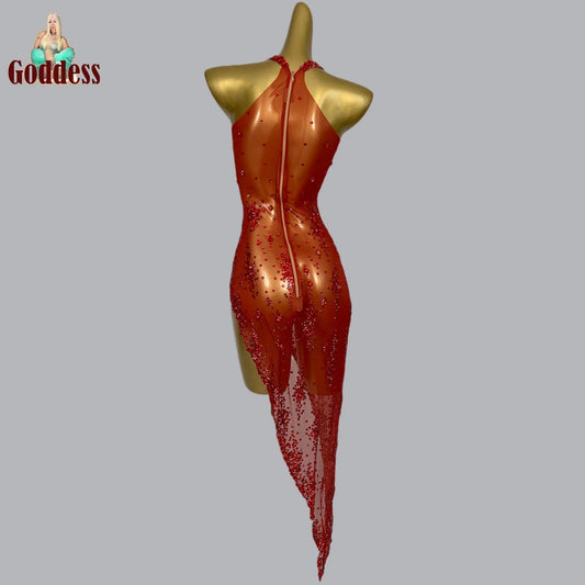 Sexy Crystals Thin Dress Lady Rhinestone Evening Dress Birthday Party Sexy Transparent Dress Bar Club Prom Dress Stage Show Wear