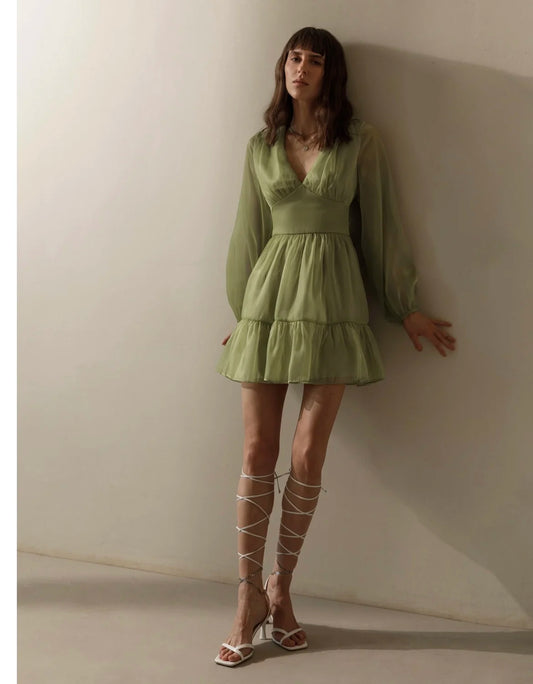 Regular price $155.99 CADRegular priceUnit price / per$206.99 CADSale price $155.99 CADGreen Long-sleeved V-neck Sexy Expansion Skirt Dress