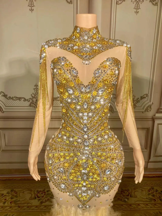 Regular price From $599.99 CADRegular priceUnit price / per$798.99 CADSale price From $599.99 CADSexy Transparent Celebrate Evening Prom Gown Birthday Dress for Women Sparkly Rhinestones Feather Dress Festival Outfit