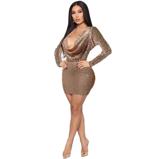 Regular price $142.99 CADRegular priceUnit price / per$190.99 CADSale price $142.99 CADSpring Design Sexy Women Dress 2 Color Solid Sparkly Sequins V-Neck Full Sleeve Ladies Mini Dress