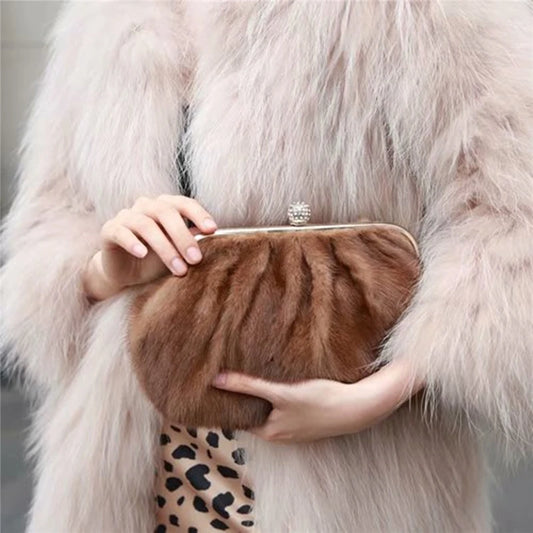Luxury Mink Fur Evening Clutch Bag - Leopard Print