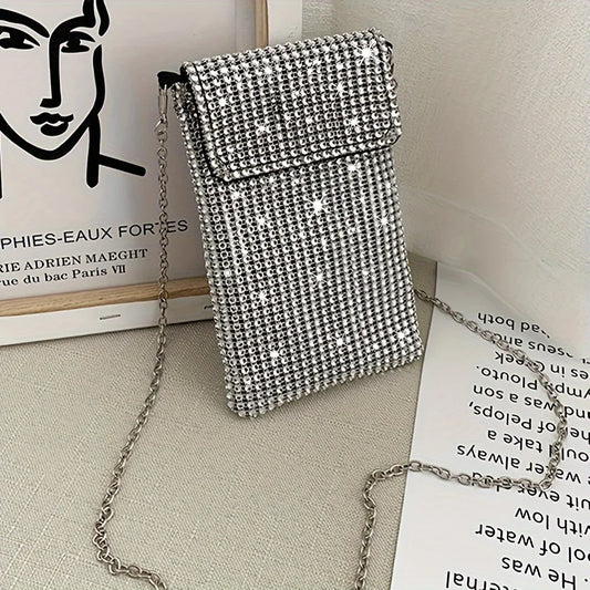 Glittering shoulder bag, crystal evening clutch, hand-held phone wallet