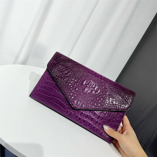 Elegant Crocodile Skin Leather Evening Clutch