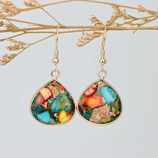 Hot Sale Long Teardrop Shape Gemstone Earrings Silver Color Hook Earring Fashion Jewelry Birthday Gifts to Women Girlfriend