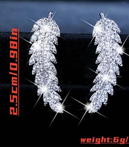 Rhinestone Feather Leaf Earrings - Elegant Glamour