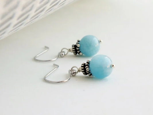 Dainty Aquamarine Silver Earrings - March Birthstone