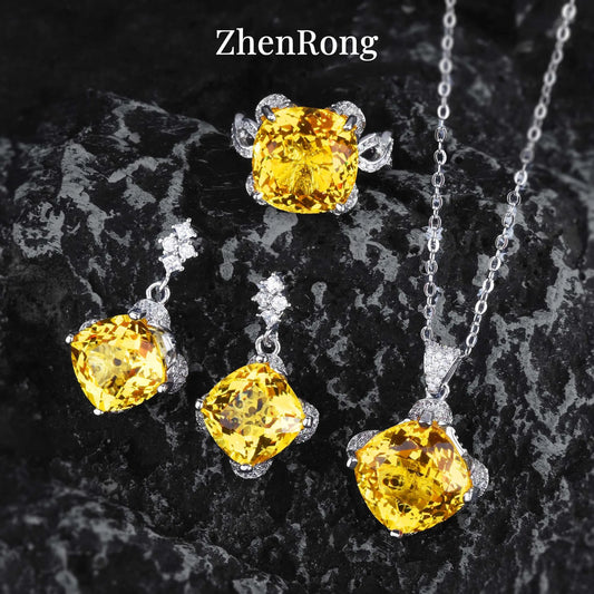 Exquisite Luxury Color Zircon Jewelry Sets Women Fashion Silver Color Orange CZ Pendant Necklaces Earrings Rings Wedding Gifts