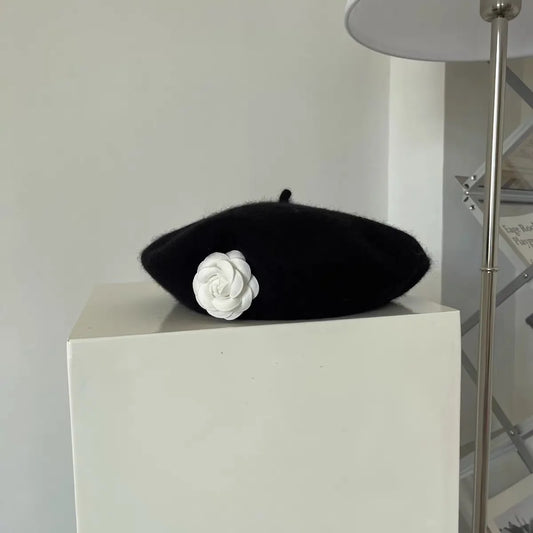 Women's winter hat Classic FlowerBlack Beret French Wool Casual Beret Hat Women Outdoor gorras para mujer