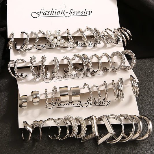 Regular price From $7.99 CADRegular priceUnit price / per$11.99 CADSale price From $7.99 CADSilver Color Twist Hoop Earrings Set Brincos Heart Pearl Hoops Vintage Metal Geometric Earrings for Women 2023 Trendy Jewerly