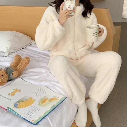 Autumn Winter Warm Flannel Zipper Couple Pajamas Set Women Sleepwear Family Pijama Lover Homewear Cloth Women Casual Men Pyjamas