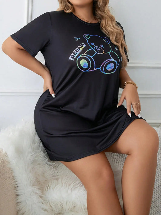 Cute bear printed short sleeved oversized women's pajamas casual and comfortable pajamas for home wear