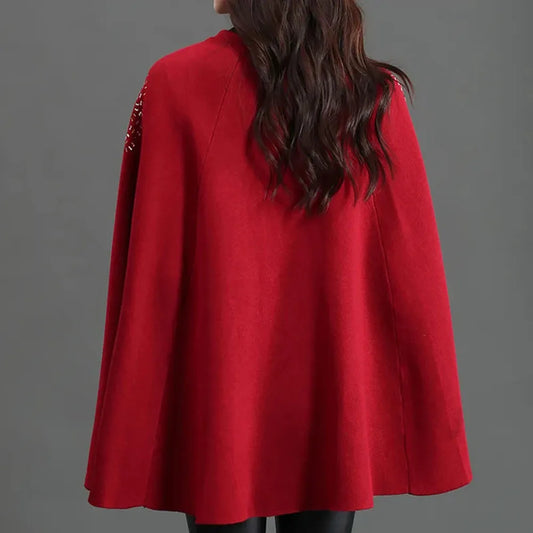 Women Shawl Batwing Sleeve Poncho Sweater Winter Knitted Cashmere Cloak Eagle Pattern Handmade Bead Sequin Embroidered Cape Coat