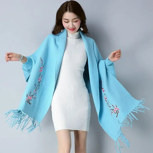 Shawl women's cardigans sweater autumn and winter mother cloak paired with knitted spring and autumn coat sleeves and tassel