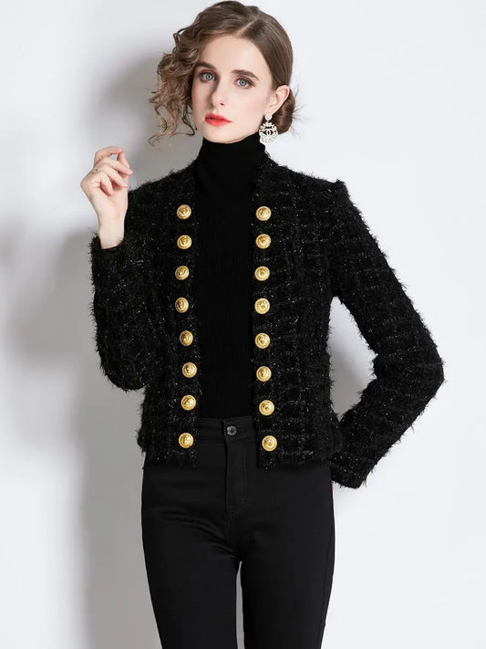 Elegant Black Tweed Double-Breasted Women's Jacket