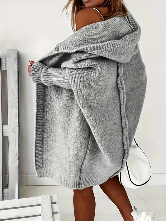 Hooded Knitted Cardigan Long Sleeve Casual Sweater For Winter & Fall Women's Clothing