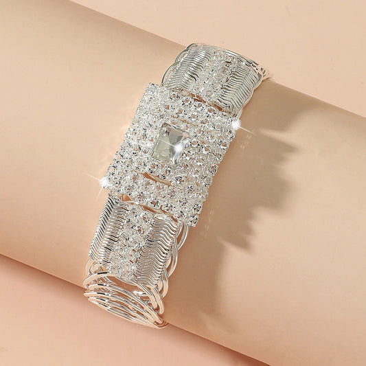 2025 New Gorgeous Square Rhinestone Open Ladies Bracelet Wedding Eid al-Adha Gift Elegant Temperament Hand Ornament