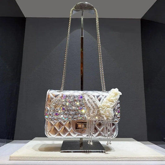 2025 Luxury Classic High-end Diamond Lattice Evening Clutch Bag Women Handmade 3D Butterfly Pearl Rhombus Handbag Shoulder Bag
