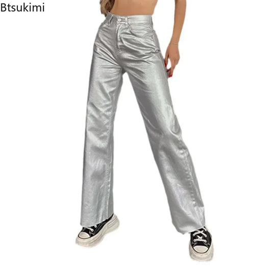 2025 Women's Leather Fashion Pants Pencil Glod Tight PU Faux Leather Pants Solid Zipper Classic Leather Trousers for Women Pants