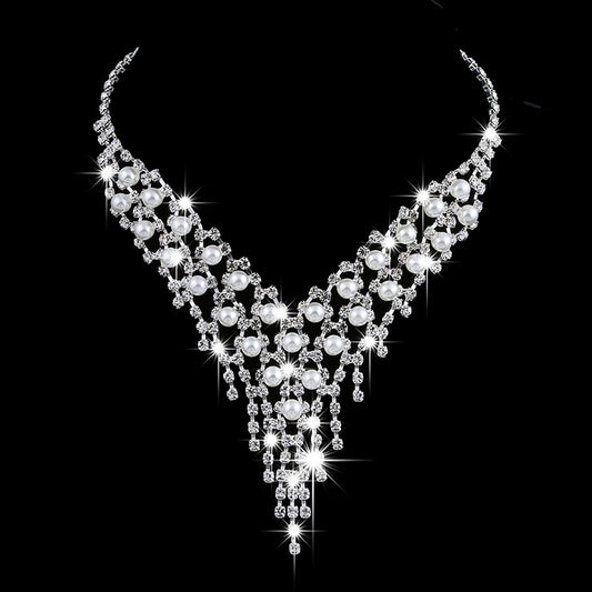 Wholesale fashion OL bridal jewelry set, claw chain earrings, Pearl Rhinestone Necklace 465