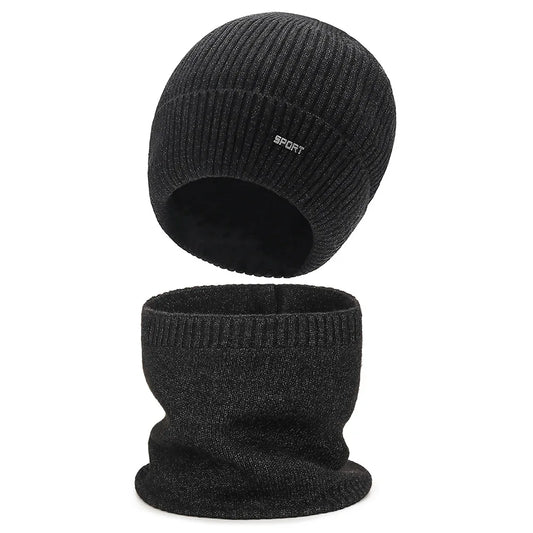Winter New Solid Color Men's And Women's Knitted Hats+Ear Protection Scarf Set Warm Hat Scarf,Outdoor Warm Hat Warm