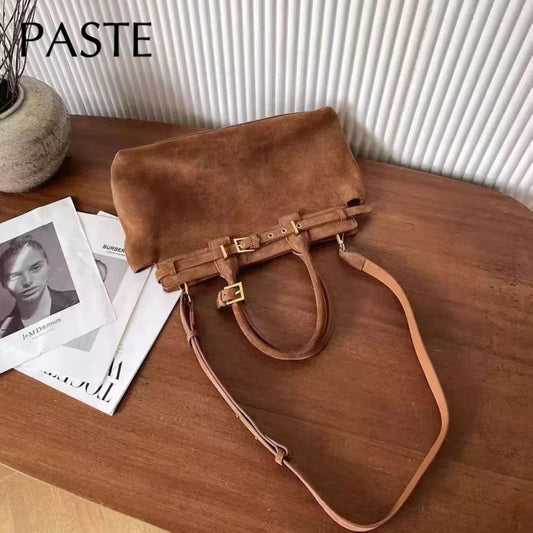 Winter Matte Coffee Camel Grey Large Tote Russian Style Real Suede Cow Leather Women Handbag Nubuck Commuter Office Shoulder Bag